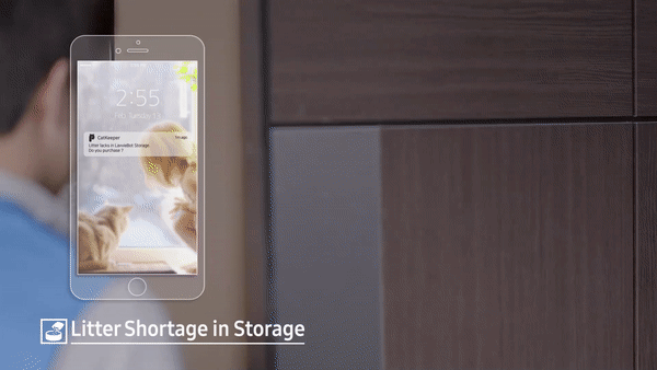 Stock up on litter through the touch of a button. When litter levels are low, our app sends a notification and streamlines the process of purchasing litter.
